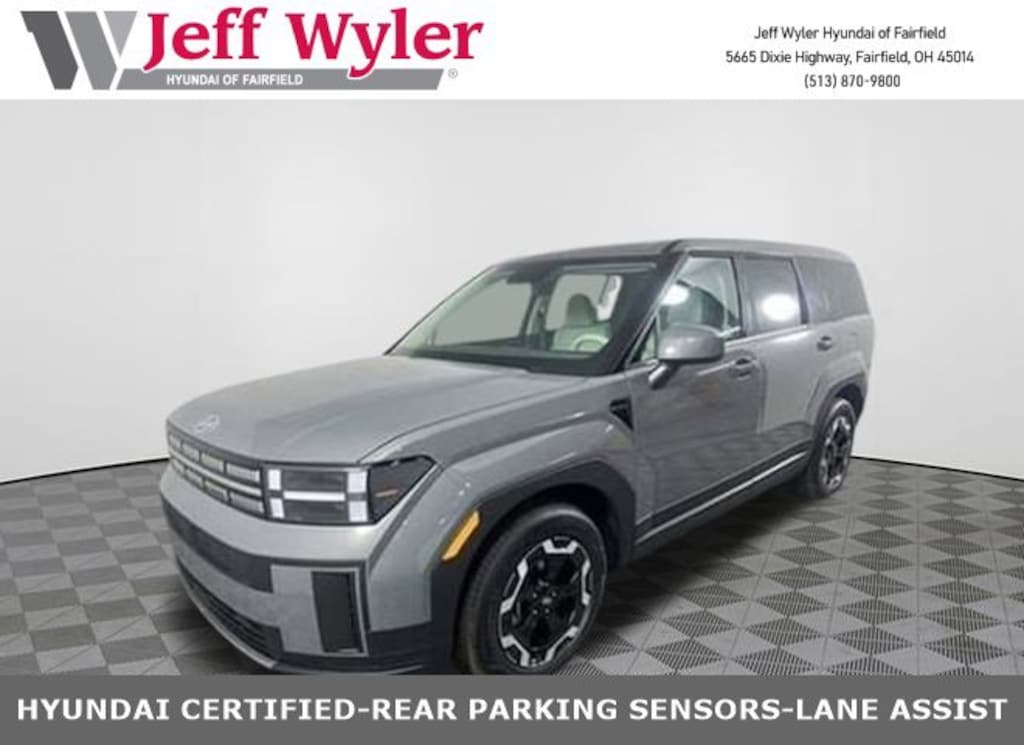 CARFAX One-Owner. Clean CARFAX. Jeff Wyler Hyundai of Fairfield is honored to offer this good-looking 2025 Hyundai Santa Fe SE in Hampton Gray. Well equipped with: Option Group 01, Hyundai Certified Used Vehicles Certified, AWD, Gray Cloth, Android Auto, Apple CarPlay, CALL NOW FOR YOUR VIP APPOINTMENT 513-870-9800, GUARANTEED FINANCING!! NO MATTER YOUR SITUATION WE CAN GET AN APPROVAL!!, THE #1 Volume dealer in the region! Come see why for yourself Today!!, 18" x 7.5J Alloy Wheels, 3rd row seats: bench, 4-Wheel Disc Brakes, 6 Speakers, ABS brakes, Air Conditioning, Alloy wheels, AM/FM radio: SiriusXM, Apple CarPlay & Android Auto, Auto High-beam Headlights, Brake assist, Bumpers: body-color, Cargo Net, Carpeted Floor Mats, Delay-off headlights, Driver door bin, Driver vanity mirror, Dual front impact airbags, Dual front side impact airbags, Electronic Stability Control, Emergency communication system, Exterior Parking Camera Rear, First Aid Kit, Four wheel independent suspension, Front anti-roll bar, Front Bucket Seats, Front Center Armrest, Front reading lights, Fully automatic headlights, Heated door mirrors, Illuminated entry, Knee airbag, Leather steering wheel, Low tire pressure warning, Occupant sensing airbag, Outside temperature display, Overhead airbag, Overhead console, Panic alarm, Passenger door bin, Passenger vanity mirror, Power door mirrors, Power Liftgate, Power steering, Power windows, Radio: AM/FM/HD Display Audio, Rear anti-roll bar, Rear seat center armrest, Rear side impact airbag, Rear window defroster, Rear window wiper, Remote keyless entry, Roadside Assistance Kit, Security system, Severe Weather Kit, Speed control, Speed-sensing steering, Split folding rear seat, Spoiler, Steering wheel mounted audio controls, Tachometer, Telescoping steering wheel, Tilt steering wheel, Traction control, Trip computer, Variably intermittent wipers, and YES Essentials Stain-Resistant Cloth Seat Trim. Certified. Hyundai Certified Used Vehicles Details: * Roadside Assistance * Limited Warranty: 60 Month/60,000 Mile (whichever comes first) from original in-service date * Warranty Deductible: $50 * 173+ Point Inspection * Vehicle History * Powertrain Limited Warranty: 120 Month/100,000 Mile (whichever comes first) from original in-service date * Includes 10-year/Unlimited Mileage Roadside Assistance with Rental Car and Trip Interruption Reimbursement; Please See Dealers for Specific Vehicle Eligibility Requirements. 10-Year/100,000 Mile Hybrid/EV Battery Warranty. 3-Months SiriusXM Trial Subscription. Complimentary 1 Year (Connected Care & Remote Pkgs).TO CHECK ON THE AVAILABILITY OF THIS VEHICLE REACH OUT TO ONE OF OUR TEAM MEMBERS!! ALSO SHOP ONLINE AT https://www.jeffwylerhyundaioffairfield.com/ Proudly Serving: Cincinnati, Dayton, Columbus, Louisville, Lexington, Indianapolis, Hamilton, Florence, Alexandria, Beavercreek, Springdale, West Chester, Monroe, Fairfield, Kenwood, Newport and all of greater Cincinnati Ohio, Indiana, and Northern Kentucky.