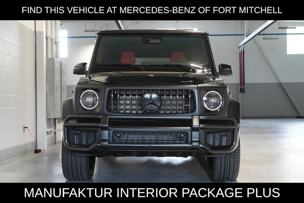 ORIGINAL MSRP $239,150.00 056 MANUFAKTUR Night Black Magno 040 black 937 MANUFAKTUR red pepper / black Leather Options DD5 MANUFAKTUR Interior Package Plus JC1 Instrument panel in nappa leather P77 SUPERIOR Line Interior PK2 Active Multicontour Seat Package Plus DV4 Two-Finish Edition 2FA MANUFAKTUR night black magno / black solid colour A22 AMG ACTIVE RIDE CONTROL suspension BS5 AMG front and rear brake callipers painted in black C44 Front protective bar in night black magno C56 Simulated underguard in night black magno CK0 AMG-specific exhaust system in black CZ3 Bumper insert in night black magno FS3 Exterior mirror housings in black GK2 MANUFAKTUR Logo Package in black P2A MANUFAKTUR Two-Finish Package PAZ AMG Night Package II R89 MANUFAKTUR spare wheel ring painted in black T81 MANUFAKTUR running boards in black 494 USA specification 5U8 Darkened lamp units 7U1 AMG emblem in Dark Chrome on bonnet 7U8 Typography in high-gloss black CA0 AMG-specific radiator grille in dark chrome CS1 Mercedes star front and rear in high-gloss black E20 MANUFAKTUR logo projector in exterior mirror F87 MANUFAKTUR Roof Two-Finish Version PBR ENERGIZING Package Plus RJ8 22â AMG Forged Monoblock Wheels, Matte Black T91 MANUFAKTUR door handle in black with embossed logo V36 MANUFAKTUR grab handles in leather X24 Model year 2025 Y72 MANUFAKTUR paint finish, magno ZA2 Full transport packaging ZG6 AMG Carbon Fiber Trim ZT7 Trim element in the grab handle with "MANUFAKTUR" lettering