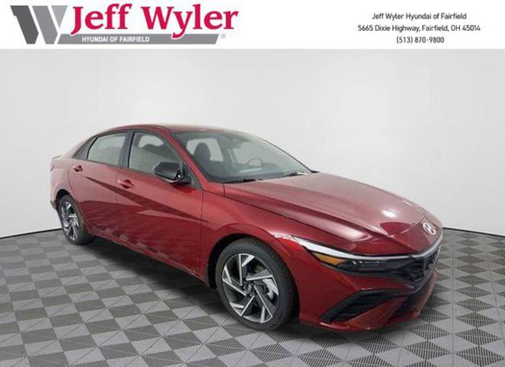 Priced below KBB Fair Purchase Price! 2025 Hyundai Elantra Ultimate Red SEL Sport FWD CVT I4 Android Auto, Apple CarPlay, CALL NOW FOR YOUR VIP APPOINTMENT 513-870-9800, FULLY SERVICED w/RECORDS, GUARANTEED FINANCING!! NO MATTER YOUR SITUATION WE CAN GET AN APPROVAL!!, THE #1 Volume dealer in the region! Come see why for yourself Today!!, WE PAY MORE FOR YOUR TRADE!!. 30/39 City/Highway MPG Jeff Wyler Hyundai of Fairfield is pleased to offer this terrific 2025 Hyundai Elantra SEL Sport in Ultimate Red. Well equipped with: Option Group 01, Android Auto, Apple CarPlay, CALL NOW FOR YOUR VIP APPOINTMENT 513-870-9800, FULLY SERVICED w/RECORDS, GUARANTEED FINANCING!! NO MATTER YOUR SITUATION WE CAN GET AN APPROVAL!!, THE #1 Volume dealer in the region! Come see why for yourself Today!!, WE PAY MORE FOR YOUR TRADE!!, 17" x 7.0J Alloy Wheels, 4-Wheel Disc Brakes, 6 Speakers, ABS brakes, Air Conditioning, All-Season Fitted Liners, Alloy wheels, AM/FM radio, Apple CarPlay & Android Auto, Auto High-beam Headlights, Automatic temperature control, Brake assist, Bumpers: body-color, Cargo Net, Carpeted Floor Mats, Delay-off headlights, Driver door bin, Driver vanity mirror, Dual front impact airbags, Dual front side impact airbags, Electronic Stability Control, Exterior Parking Camera Rear, Front anti-roll bar, Front Bucket Seats, Front Center Armrest, Front dual zone A/C, Front reading lights, Front wheel independent suspension, Fully automatic headlights, Illuminated entry, Leather Shift Knob, Leather steering wheel, Low tire pressure warning, Occupant sensing airbag, Outside temperature display, Overhead airbag, Overhead console, Panic alarm, Passenger door bin, Passenger vanity mirror, Power door mirrors, Power steering, Power windows, Premium Cloth Seat Trim, Radio: AM/FM/HD Display Audio, Rear side impact airbag, Rear window defroster, Remote keyless entry, Reversible Cargo Tray, Security system, Speed control, Speed-sensing steering, Spoiler, Steering wheel mounted audio controls, Tachometer, Telescoping steering wheel, Tilt steering wheel, Traction control, Trip computer, and Variably intermittent wipers. Price includes: $500 - Military Program. Exp. 11/03/2025