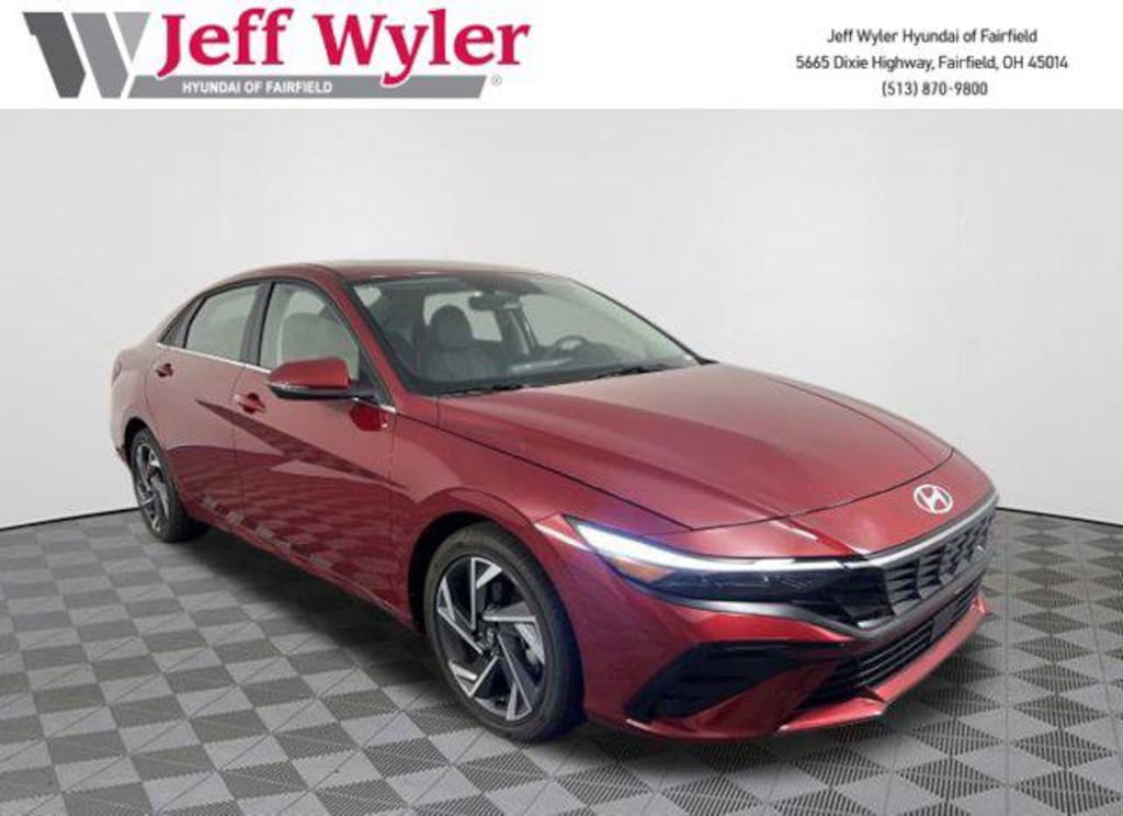 Priced below KBB Fair Purchase Price! 2025 Hyundai Elantra Ultimate Red Limited FWD CVT I4 Android Auto, Apple CarPlay, CALL NOW FOR YOUR VIP APPOINTMENT 513-870-9800, FULLY SERVICED w/RECORDS, GUARANTEED FINANCING!! NO MATTER YOUR SITUATION WE CAN GET AN APPROVAL!!, THE #1 Volume dealer in the region! Come see why for yourself Today!!, WE PAY MORE FOR YOUR TRADE!!. 30/39 City/Highway MPG Jeff Wyler Hyundai of Fairfield is very proud to offer this stunning-looking 2025 Hyundai Elantra Limited in Ultimate Red. Well equipped with: Option Group 01, Android Auto, Apple CarPlay, CALL NOW FOR YOUR VIP APPOINTMENT 513-870-9800, FULLY SERVICED w/RECORDS, GUARANTEED FINANCING!! NO MATTER YOUR SITUATION WE CAN GET AN APPROVAL!!, THE #1 Volume dealer in the region! Come see why for yourself Today!!, WE PAY MORE FOR YOUR TRADE!!, 17" x 7.0J Alloy Wheels, 4-Wheel Disc Brakes, 8 Speakers, ABS brakes, Air Conditioning, Alloy Door Sills, Alloy wheels, AM/FM radio: SiriusXM, Apple CarPlay & Android Auto, Auto High-beam Headlights, Auto-dimming Rear-View mirror, Automatic temperature control, Brake assist, Bumpers: body-color, Cargo Net, Carpeted Floor Mats, Delay-off headlights, Driver door bin, Driver vanity mirror, Dual front impact airbags, Dual front side impact airbags, Electronic Stability Control, Emergency communication system: Bluelink+, First Aid Kit, Front anti-roll bar, Front Bucket Seats, Front Center Armrest, Front dual zone A/C, Front reading lights, Front wheel independent suspension, Fully automatic headlights, H-Tex Leatherette Seats, Heated door mirrors, Heated Front Bucket Seats, Heated front seats, Illuminated entry, Leather steering wheel, Low tire pressure warning, Navigation System, Occupant sensing airbag, Outside temperature display, Overhead airbag, Overhead console, Panic alarm, Passenger door bin, Passenger vanity mirror, Power door mirrors, Power driver seat, Power moonroof, Power steering, Power windows, Radio: AM/FM/HD/SiriusXM Display Audio, Rear seat center armrest, Rear side impact airbag, Rear window defroster, Remote keyless entry, Reversible Cargo Tray, Security system, Speed control, Speed-sensing steering, Split folding rear seat, Steering wheel mounted audio controls, Tachometer, Telescoping steering wheel, Tilt steering wheel, Traction control, Trip computer, Turn signal indicator mirrors, and Variably intermittent wipers. Price includes: $500 - Military Program. Exp. 11/03/2025
