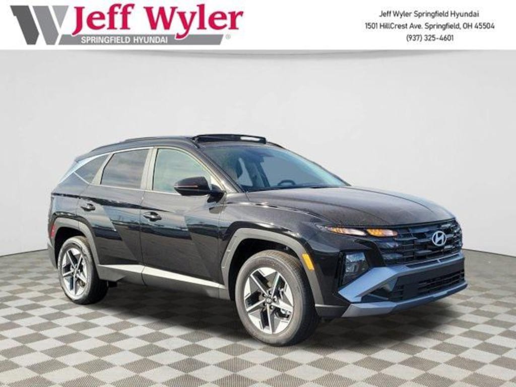 Jeff Wyler Springfield Auto Mall is delighted to offer this charming 2025 Hyundai Tucson Hybrid SEL Convenience in Ash Black. Well equipped with: Option Group 01, Tow & Go Package (Ball Mount Kit and Tow Hitch), 18" Alloy Wheels, 4-Wheel Disc Brakes, 6 Speakers, ABS brakes, Air Conditioning, Alloy wheels, AM/FM radio: SiriusXM, Apple CarPlay & Android Auto, Auto High-beam Headlights, Auto-dimming Rear-View mirror, Automatic temperature control, Brake assist, Bumpers: body-color, Cargo Net, Cargo Tray, Carpeted Floor Mats, Delay-off headlights, Driver door bin, Driver vanity mirror, Dual front impact airbags, Dual front side impact airbags, Electronic Stability Control, Emergency communication system: Bluelink+, First Aid Kit, Four wheel independent suspension, Front anti-roll bar, Front Bucket Seats, Front Center Armrest, Front dual zone A/C, Front reading lights, Fully automatic headlights, H-Tex Seat Trim, Heated door mirrors, Heated Front Bucket Seats, Heated front seats, Illuminated entry, Leather steering wheel, Low tire pressure warning, Navigation System, Occupant sensing airbag, Outside temperature display, Overhead airbag, Overhead console, Panic alarm, Passenger door bin, Passenger vanity mirror, Power door mirrors, Power driver seat, Power Liftgate, Power moonroof, Power steering, Power windows, Radio data system, Radio: AM/FM/HD Audio System, Rear anti-roll bar, Rear reading lights, Rear seat center armrest, Rear side impact airbag, Rear window defroster, Rear window wiper, Remote keyless entry, Security system, Speed control, Split folding rear seat, Spoiler, Steering wheel mounted audio controls, Tachometer, Telescoping steering wheel, Tilt steering wheel, Traction control, Trip computer, Turn signal indicator mirrors, and Variably intermittent wipers. 37/36 City/Highway MPG 37/36 City/Highway MPGWyler Family First Package Includes: NanoCure Appearance Protection: Exterior & Interior Chemical Sealant Applied to Protect Against Environmental Hazards (7 Year Warranty Coverage). Pulse- Rear end Collision Avoidance System Theft Deterrent Strategy gives you 5 Years of Coverage against vehicle Theft, Offering up to a $5,000 benefit. Available Incentives: $3000 - Hyundai HMF Dealer Choice : $3000 discount and 5.99% APR for 24 months. $44.32 per $1000 financed. Available to well qualified buyers who finance through Hyundai Motor Finance. H704. Exp. 11/03/2025