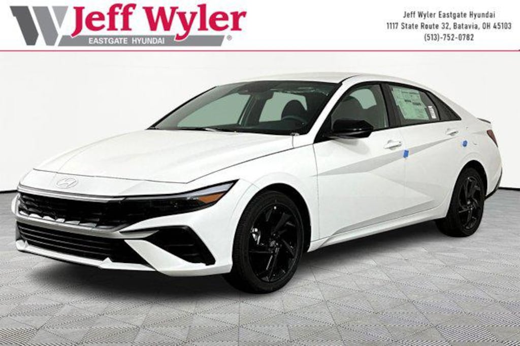 Priced below KBB Fair Purchase Price! Serenity White 2026 Hyundai Elantra SEL Sport I4 FWD CVT 30/39 City/Highway MPG Jeff Wyler Eastgate Auto Mall is pleased to offer this great-looking 2026 Hyundai Elantra SEL Sport in Serenity White. Well equipped with: Option Group 01, 4-Wheel Disc Brakes, 6 Speakers, ABS brakes, Air Conditioning, Alloy wheels, AM/FM radio, Apple CarPlay & Android Auto, Auto High-beam Headlights, Automatic temperature control, Brake assist, Bumpers: body-color, Cargo Net, Cargo Tray, Carpeted Floor Mats, Delay-off headlights, Driver door bin, Driver vanity mirror, Dual front impact airbags, Dual front side impact airbags, Electronic Stability Control, Exterior Parking Camera Rear, Front anti-roll bar, Front Bucket Seats, Front Center Armrest, Front dual zone A/C, Front reading lights, Front wheel independent suspension, Fully automatic headlights, Illuminated entry, Low tire pressure warning, Occupant sensing airbag, Outside temperature display, Overhead airbag, Overhead console, Panic alarm, Passenger door bin, Passenger vanity mirror, Power door mirrors, Power steering, Power windows, Premium Cloth Seat Trim, Radio: AM/FM/HD Display Audio, Rear side impact airbag, Rear window defroster, Remote keyless entry, Security system, Speed control, Speed-sensing steering, Spoiler, Steering wheel mounted audio controls, Tachometer, Telescoping steering wheel, Tilt steering wheel, Traction control, Trip computer, Variably intermittent wipers, and Wheels: 17" x 7.0J Alloy Gloss Black w/Dark Finish. 30/39 City/Highway MPG Price includes: $2000 - Hyundai HMF Dealer Choice : $2000 discount and 5.39% APR for 24 months. $44.05 per $1000 financed. Available to well qualified buyers who finance through Hyundai Motor Finance. H704. Exp. 04/30/2026