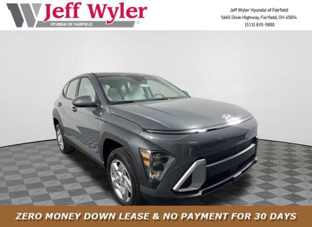 Priced below KBB Fair Purchase Price! 2026 Hyundai Kona Ecotronic Gray Pearl SE AWD CVT 2.0L I4 DOHC 16V Android Auto, Apple CarPlay, CALL NOW FOR YOUR VIP APPOINTMENT 513-870-9800, FULLY SERVICED w/RECORDS, GUARANTEED FINANCING!! NO MATTER YOUR SITUATION WE CAN GET AN APPROVAL!!, THE #1 Volume dealer in the region! Come see why for yourself Today!!, WE PAY MORE FOR YOUR TRADE!!. 27/29 City/Highway MPG Jeff Wyler Hyundai of Fairfield is proud to offer this attractive-looking 2026 Hyundai Kona SE in Ecotronic Gray Pearl. Well equipped with: Option Group 01, Android Auto, Apple CarPlay, CALL NOW FOR YOUR VIP APPOINTMENT 513-870-9800, FULLY SERVICED w/RECORDS, GUARANTEED FINANCING!! NO MATTER YOUR SITUATION WE CAN GET AN APPROVAL!!, THE #1 Volume dealer in the region! Come see why for yourself Today!!, WE PAY MORE FOR YOUR TRADE!!, 4-Wheel Disc Brakes, 6 Speakers, ABS brakes, Air Conditioning, Alloy wheels, AM/FM radio: SiriusXM, Apple CarPlay & Android Auto, Auto High-beam Headlights, Brake assist, Bumpers: body-color, Cargo Tray, Carpeted Floor Mats, Cloth Seat Trim, Delay-off headlights, Driver door bin, Driver vanity mirror, Dual front impact airbags, Dual front side impact airbags, Electronic Stability Control, Emergency communication system: None, Exterior Parking Camera Rear, First Aid Kit, Four wheel independent suspension, Front anti-roll bar, Front Bucket Seats, Front Center Armrest, Front reading lights, Fully automatic headlights, Illuminated entry, Low tire pressure warning, Occupant sensing airbag, Outside temperature display, Overhead airbag, Panic alarm, Passenger door bin, Passenger vanity mirror, Power door mirrors, Power steering, Power windows, Radio: AM/FM/SiriusXM/HD Audio System, Rear anti-roll bar, Rear window defroster, Rear window wiper, Remote keyless entry, Security system, Severe Weather Kit, Speed control, Speed-sensing steering, Split folding rear seat, Spoiler, Steering wheel mounted audio controls, Tachometer, Telescoping steering wheel, Tilt steering wheel, Traction control, Trip computer, Variably intermittent wipers, and Wheels: 17" x 7.0J Steel Gray Alloy. Price includes: $400 - College Graduate Program. Exp. 02/02/2026 $500 - Military Program. Exp. 02/02/2026 $750 - Hyundai HMF Dealer Choice : $750 discount and 5.39% APR for 24 months. $44.05 per $1000 financed. Available to well qualified buyers who finance through Hyundai Motor Finance. H704. Exp. 02/02/2026
