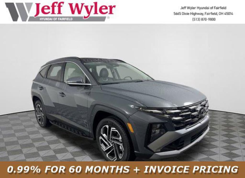 Priced below KBB Fair Purchase Price! 2026 Hyundai Tucson Ecotronic Gray Limited AWD 8-Speed Automatic with SHIFTRONIC 2.5L I4 DGI DOHC 16V LEV3-SULEV30 187hp AWD, Android Auto, Apple CarPlay, CALL NOW FOR YOUR VIP APPOINTMENT 513-870-9800, FULLY SERVICED w/RECORDS, GUARANTEED FINANCING!! NO MATTER YOUR SITUATION WE CAN GET AN APPROVAL!!, THE #1 Volume dealer in the region! Come see why for yourself Today!!, WE PAY MORE FOR YOUR TRADE!!. 24/30 City/Highway MPG Jeff Wyler Hyundai of Fairfield is pumped up to offer this good-looking 2026 Hyundai Tucson Limited in Ecotronic Gray. Well equipped with: Option Group 01, AWD, Android Auto, Apple CarPlay, CALL NOW FOR YOUR VIP APPOINTMENT 513-870-9800, FULLY SERVICED w/RECORDS, GUARANTEED FINANCING!! NO MATTER YOUR SITUATION WE CAN GET AN APPROVAL!!, THE #1 Volume dealer in the region! Come see why for yourself Today!!, WE PAY MORE FOR YOUR TRADE!!, 4-Wheel Disc Brakes, 8 Speakers, ABS brakes, Air Conditioning, Alloy wheels, AM/FM radio: SiriusXM, Apple CarPlay & Android Auto, Auto High-beam Headlights, Auto-dimming Rear-View mirror, Automatic temperature control, Brake assist, Bumpers: body-color, Cargo Net, Carpeted Floor Mats, Delay-off headlights, Driver door bin, Driver vanity mirror, Dual front impact airbags, Dual front side impact airbags, Electronic Stability Control, Emergency communication system: None, First Aid Kit, Four wheel independent suspension, Front anti-roll bar, Front Bucket Seats, Front Center Armrest, Front dual zone A/C, Front reading lights, Fully automatic headlights, Garage door transmitter: HomeLink, Heads-Up Display, Heated and Ventilated Front Bucket Seats, Heated door mirrors, Heated front seats, Heated rear seats, Heated steering wheel, Illuminated entry, Leather Shift Knob, Leather steering wheel, Leather-Trimmed Seat Trim, Low tire pressure warning, Memory seat, Navigation System, Occupant sensing airbag, Outside temperature display, Overhead airbag, Overhead console, Panic alarm, Passenger door bin, Passenger vanity mirror, Power door mirrors, Power driver seat, Power Liftgate, Power moonroof, Power passenger seat, Power steering, Power windows, Radio data system, Radio: Bose Premium w/AM/FM/HD Audio System, Rain sensing wipers, Rear anti-roll bar, Rear reading lights, Rear seat center armrest, Rear side impact airbag, Rear window defroster, Rear window wiper, Remote keyless entry, Security system, Side Steps, Speed control, Split folding rear seat, Spoiler, Steering wheel mounted audio controls, Tachometer, Telescoping steering wheel, Tilt steering wheel, Traction control, Trip computer, Turn signal indicator mirrors, Variably intermittent wipers, Ventilated front seats, and Wheels: 19" x 7.5J Alloy. Price includes: $2750 - Hyundai HMF Dealer Choice : $2750 discount and 5.39% APR for 24 months. $44.05 per $1000 financed. Available to well qualified buyers who finance through Hyundai Motor Finance. H704. Exp. 03/02/2026 $400 - College Graduate Program. Exp. 03/02/2026 $500 - Military Program. Exp. 03/02/2026