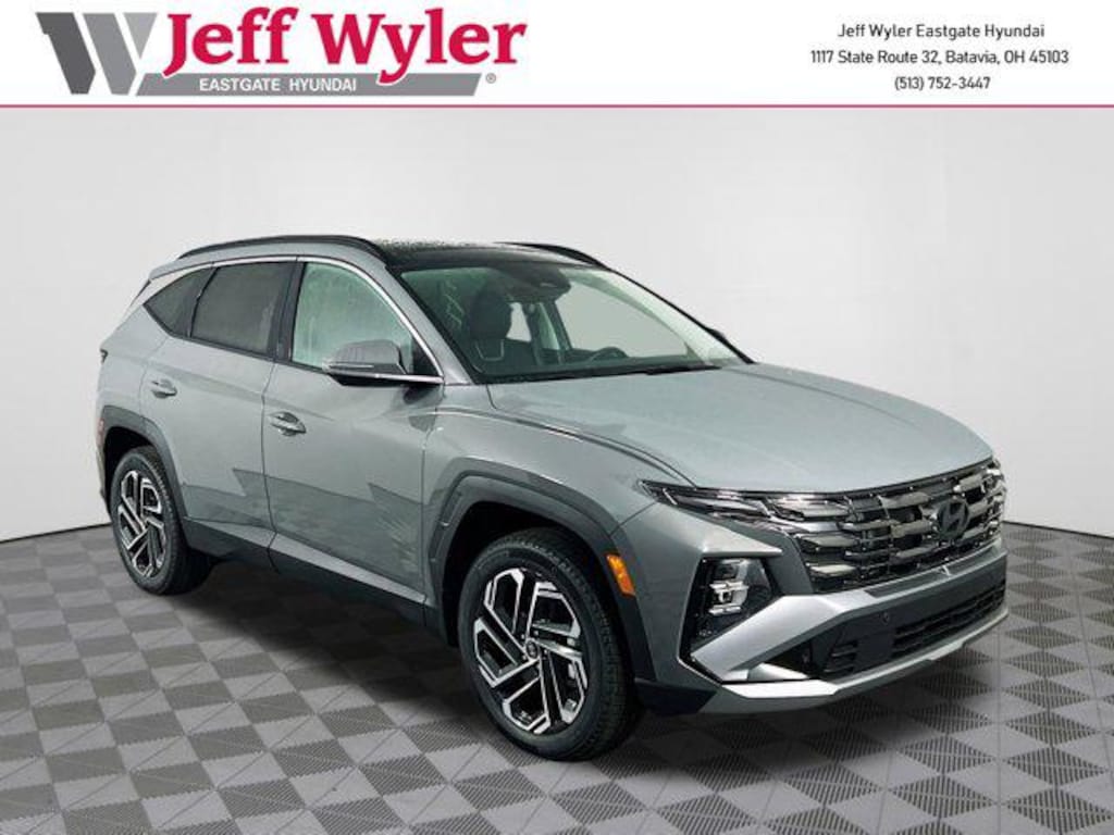 Hampton Gray 2026 Hyundai Tucson Limited 2.5L I4 DGI DOHC 16V LEV3-SULEV30 187hp AWD 8-Speed Automatic with SHIFTRONIC 24/30 City/Highway MPG Jeff Wyler Eastgate Auto Mall is excited to offer this outstanding 2026 Hyundai Tucson Limited in Hampton Gray. Well equipped with: Option Group 01, 4-Wheel Disc Brakes, 8 Speakers, ABS brakes, Air Conditioning, Alloy wheels, AM/FM radio: SiriusXM, Apple CarPlay & Android Auto, Auto High-beam Headlights, Auto-dimming Rear-View mirror, Automatic temperature control, Brake assist, Bumpers: body-color, Cargo Blocks, Cargo Cover, Cargo Net, Cargo Organizer, Cargo Tray, Carpeted Floor Mats, Delay-off headlights, Driver door bin, Driver vanity mirror, Dual front impact airbags, Dual front side impact airbags, Electronic Stability Control, Emergency communication system: Bluelink+, First Aid Kit, Four wheel independent suspension, Front and Rear Mudguards, Front anti-roll bar, Front Bucket Seats, Front Center Armrest, Front dual zone A/C, Front reading lights, Fully automatic headlights, Garage door transmitter: HomeLink, Heads-Up Display, Heated & Ventilated Front Bucket Seats, Heated door mirrors, Heated front seats, Heated rear seats, Heated steering wheel, Illuminated entry, Leather Shift Knob, Leather steering wheel, Leather-Trimmed Seat Trim, Low tire pressure warning, Memory seat, Navigation System, Occupant sensing airbag, Outside temperature display, Overhead airbag, Overhead console, Panic alarm, Passenger door bin, Passenger vanity mirror, Power door mirrors, Power driver seat, Power Liftgate, Power moonroof, Power passenger seat, Power steering, Power windows, Radio data system, Radio: Bose Premium w/AM/FM/HD Audio System, Rain sensing wipers, Rear anti-roll bar, Rear reading lights, Rear seat center armrest, Rear side impact airbag, Rear window defroster, Rear window wiper, Remote keyless entry, Roadside Assistance Kit, Security system, Speed control, Split folding rear seat, Spoiler, Steering wheel mounted audio controls, Tachometer, Telescoping steering wheel, Tilt steering wheel, Traction control, Trip computer, Turn signal indicator mirrors, Variably intermittent wipers, Ventilated front seats, and Wheels: 19" x 7.5J Alloy. 24/30 City/Highway MPG