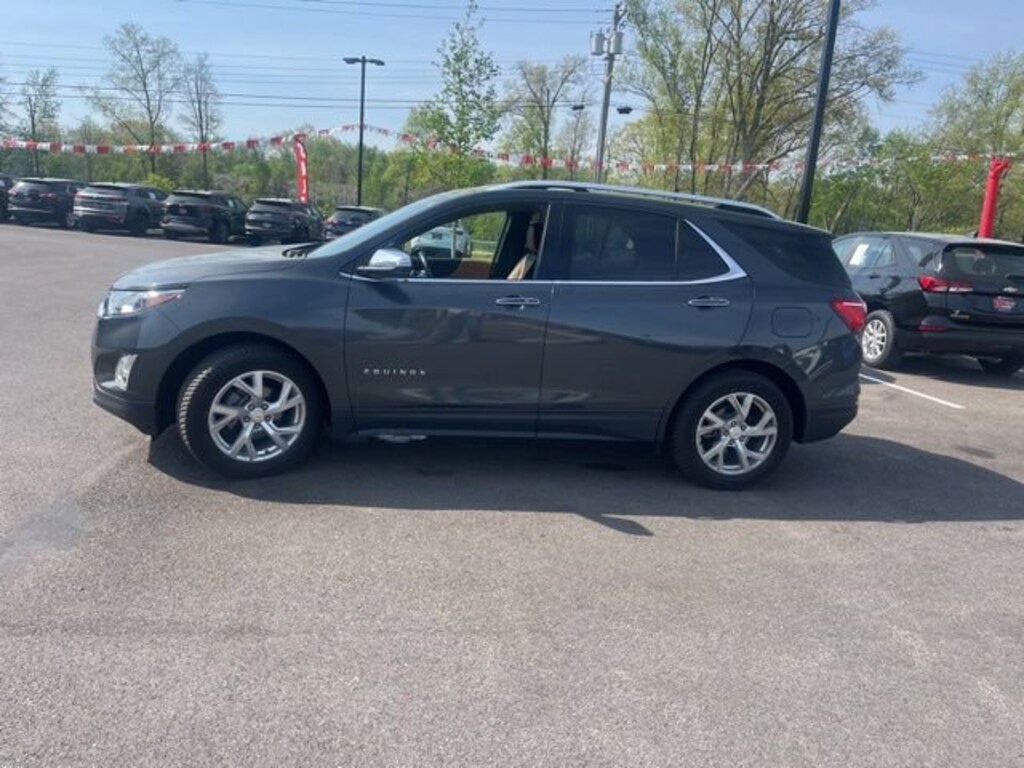Jeff Wyler Eastgate Auto Mall is pumped up to offer this superb-looking 2021 Chevrolet Equinox Premier in Nightfall Gray Metallic. Well equipped with: Preferred Equipment Group 1LZ, 18 Aluminum Wheels, 2 Rear USB Charging-Only Ports, 2 USB Data Ports, 2 USB Data Ports w/SD Card Reader, 2-Way Power Driver Lumbar Control Seat Adjuster, 3.50 Final Drive Axle Ratio, 4-Wheel Disc Brakes, 6 Speaker Audio System Feature, 6 Speakers, 8-Way Power Driver Seat Adjuster, ABS brakes, Air Conditioning, Alloy wheels, AM/FM radio: SiriusXM, Apple CarPlay/Android Auto, Auto High-beam Headlights, Auto-dimming door mirrors, Auto-dimming Rear-View mirror, Automatic temperature control, Bluetooth® For Phone, Brake assist, Bumpers: body-color, Compass, Delay-off headlights, Driver door bin, Driver vanity mirror, Dual front impact airbags, Dual front side impact airbags, Electronic Stability Control, Emergency communication system: OnStar and Chevrolet connected services capable, Four wheel independent suspension, Front anti-roll bar, Front Bucket Seats, Front Center Armrest, Front dual zone A/C, Front fog lights, Front Passenger 4-Way Manual Seat Adjuster, Front reading lights, Fully automatic headlights, Garage door transmitter, Heated door mirrors, Heated Driver & Front Passenger Seats, Heated front seats, Illuminated entry, Low tire pressure warning, Memory seat, Occupant sensing airbag, Outside temperature display, Overhead airbag, Overhead console, Panic alarm, Passenger door bin, Passenger vanity mirror, Perforated Leather-Appointed Seat Trim, Power door mirrors, Power driver seat, Power Liftgate, Power steering, Power windows, Premium audio system: Chevrolet Infotainment 3 Plus, Radio data system, Radio: Chevrolet Infotainment 3 Plus System, Rear anti-roll bar, Rear reading lights, Rear seat center armrest, Rear window defroster, Rear window wiper, Remote keyless entry, Roof rack: rails only, Security system, SiriusXM Radio, Speed control, Speed-sensing steering, Split folding rear seat, Spoiler, Steering wheel mounted audio controls, Tachometer, Telescoping steering wheel, Tilt steering wheel, Traction control, Trip computer, Turn signal indicator mirrors, and Variably intermittent wipers. Awards:* 2021 IIHS Top Safety Pick with specific headlights Ask about available certifications. Used vehicles 10 years of age or newer with less than 100,000 miles are eligible for the Wyler Assurance Program, but eligible vehicles must pass our reconditioning process and multi-point inspection. Provided the vehicle passes inspection, vehicles will be eligible for the 6 month/6,000 mile limited warranty. The 6 month/6,000 mile limited warranty is NOT available on AS-IS vehicles, wholesale vehicles, lease buyback/pass-thru vehicles or un-inspected vehicles. Note that this program can also apply to vehicles where the remaining factory coverage is less than 6 months or 6,000 miles. Please check the Federal Trade Commission (FTC) Buyers guide on the vehicle for full details as to whether or not warranty coverage may apply. Contact Dealer for additional details. The Wyler Assurance 6 month/6,000 Mile limited warranty ends 6 months from the date of the Retail Purchase Agreement (BUYERS ORDER) or when the vehicle's odometer registers 6,000 additional miles to the mileage listed on the BUYERS ORDER, whichever comes first. Your Deductible - The warranty holder on your contract pays the first $100 of each covered repair.