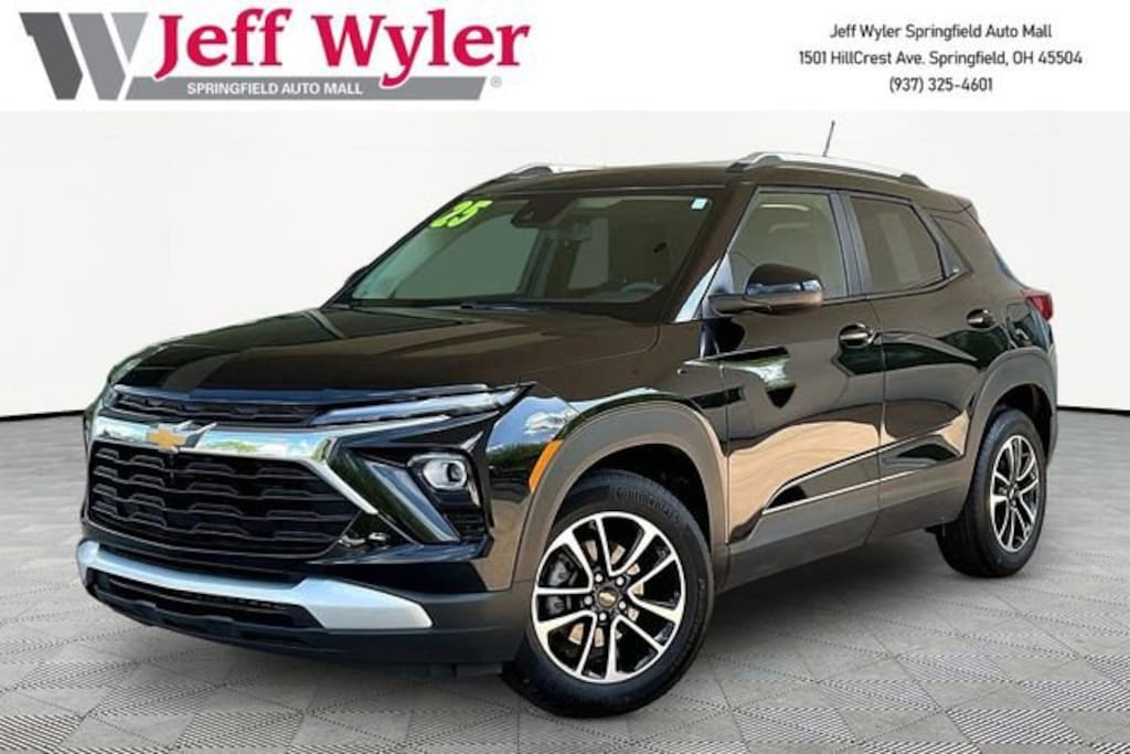 Jeff Wyler Springfield Auto Mall is pumped up to offer this good-looking 2025 Chevrolet TrailBlazer LT in Mosaic Black Metallic. Well equipped with: Preferred Equipment Group 1LT, 1 Type-An and 1 Type-C USB Ports, 4-Way Manual Front Passenger Seat Adjuster, 4-Wheel Disc Brakes, 5.45 Final Drive Axle Ratio, 6 Speakers, 6-Speaker Audio System Feature, 6-Way Manual Driver Seat Adjuster, ABS brakes, Air Conditioning, Alloy wheels, AM/FM radio: SiriusXM, Auto High-beam Headlights, Brake assist, Bumpers: body-color, Cloth Seat Trim, Compass, Delay-off headlights, Driver door bin, Driver vanity mirror, Dual front impact airbags, Dual front side impact airbags, Electronic Stability Control, Emergency communication system: OnStar and Chevrolet connected services capable, Exterior Parking Camera Rear, Flat-Folding Front Passenger Seatback, Front anti-roll bar, Front Bucket Seats, Front Center Armrest, Front reading lights, Front wheel independent suspension, Fully automatic headlights, Heated door mirrors, Illuminated entry, Knee airbag, Low tire pressure warning, Occupant sensing airbag, Overhead airbag, Overhead console, Panic alarm, Passenger door bin, Passenger vanity mirror, Power door mirrors, Power steering, Power windows, Radio data system, Radio: AM/FM Stereo Audio System, Rear side impact airbag, Rear window defroster, Rear window wiper, Remote keyless entry, Ride and Handling Suspension, Security system, SiriusXM Trial Subscription, Speed control, Split folding rear seat, Spoiler, Steering wheel mounted audio controls, Tachometer, Telescoping steering wheel, Tilt steering wheel, Traction control, Trip computer, Variably intermittent wipers, Wheels: 17" High Gloss Black Machined Aluminum, and Wireless Apple CarPlay/Android Auto. Ask about available certifications. Used vehicles 10 years of age or newer with less than 100,000 miles are eligible for the Wyler Assurance Program, but eligible vehicles must pass our reconditioning process and multi-point inspection. Provided the vehicle passes inspection, vehicles will be eligible for the 6 month/6,000 mile limited warranty. The 6 month/6,000 mile limited warranty is NOT available on AS-IS vehicles, wholesale vehicles, lease buyback/pass-thru vehicles or un-inspected vehicles. Note that this program can also apply to vehicles where the remaining factory coverage is less than 6 months or 6,000 miles. Please check the Federal Trade Commission (FTC) Buyers guide on the vehicle for full details as to whether or not warranty coverage may apply. Contact Dealer for additional details. The Wyler Assurance 6 month/6,000 Mile limited warranty ends 6 months from the date of the Retail Purchase Agreement (BUYERS ORDER) or when the vehicle's odometer registers 6,000 additional miles to the mileage listed on the BUYERS ORDER, whichever comes first. Your Deductible - The warranty holder on your contract pays the first $100 of each covered repair.