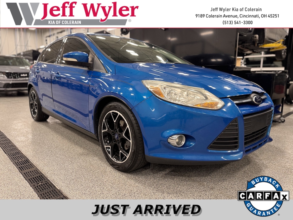 Jeff Wyler Kia of Colerain is pleased to offer this charming 2014 Ford Focus SE in Blue Candy Tinted Clearcoat. Equipment Group 201A, 16" Painted Aluminum Alloy Wheels, 17" Black Painted & Machined Alloy Wheels, 6 Speakers, ABS brakes, Air Conditioning, Alloy wheels, AM/FM radio, Brake assist, Bumpers: body-color, Cargo Area Protector, CD player, Cloth Front Bucket Seats, Compass, Delay-off headlights, Driver door bin, Driver vanity mirror, Dual front impact airbags, Dual front side impact airbags, Electronic Stability Control, Four wheel independent suspension, Front anti-roll bar, Front Bucket Seats, Front Center Armrest, Fully automatic headlights, Illuminated entry, Knee airbag, Low tire pressure warning, Occupant sensing airbag, Outside temperature display, Overhead airbag, Panic alarm, Passenger door bin, Passenger vanity mirror, Power door mirrors, Power Moonroof, Power steering, Power windows, Radio data system, Radio: AM/FM Single-CD/MP3-Capable, Rear anti-roll bar, Rear seat center armrest, Rear window defroster, Rear window wiper, Remote keyless entry, Speed control, Split folding rear seat, Spoiler, Steering wheel mounted audio controls, SYNC Communications & Entertainment System, Tachometer, Telescoping steering wheel, Tilt steering wheel, Traction control, Trip computer, and Variably intermittent wipers Our PRE-OWNED vehicles are put through a rigorous 167- POINT QUALITY ASSURANCE INSPECTION along with an average amount of over $1,400.00 SPENT to recondition each vehicle so we can be sure to deliver you the highest quality vehicle like you deserve! ***ONLINE PRICE DOES NOT INCLUDE WYLER FAMILY FIRST PACKAGE***