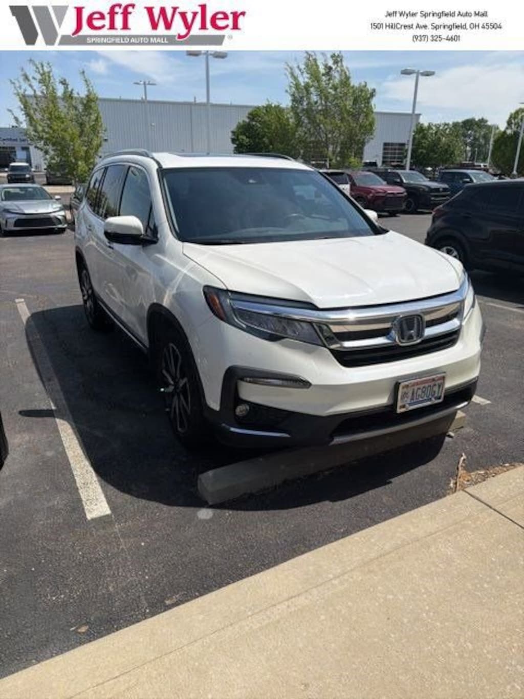 Jeff Wyler Springfield Auto Mall is delighted to offer this gorgeous 2019 Honda Pilot Touring in . Well equipped with: 10 Speakers, 3rd row seats: split-bench, 4-Wheel Disc Brakes, 4.334 Axle Ratio, A/V remote: CabinControl, ABS brakes, Air Conditioning, Alloy wheels, AM/FM radio: SiriusXM, Apple CarPlay/Android Auto, Auto High-beam Headlights, Auto-dimming Rear-View mirror, Automatic temperature control, Blind Spot Information (BSI) System warning, Brake assist, Bumpers: body-color, Compass, Delay-off headlights, Driver door bin, Driver vanity mirror, Dual front impact airbags, Dual front side impact airbags, Electronic Stability Control, Emergency communication system: HondaLink, Exterior Parking Camera Rear, Forward collision: Collision Mitigation Braking System (CMBS) + FCW mitigation, Four wheel independent suspension, Front anti-roll bar, Front Bucket Seats, Front Center Armrest, Front dual zone A/C, Front fog lights, Front reading lights, Fully automatic headlights, Garage door transmitter: HomeLink, Headphones, Heated door mirrors, Heated Front Bucket Seats, Heated front seats, Heated rear seats, Illuminated entry, Lane departure: Lane Keeping Assist System (LKAS) active, Leather-Trimmed Seats, Low tire pressure warning, Memory seat, Navigation system: Honda Satellite-Linked Navigation System, Occupant sensing airbag, Outside temperature display, Overhead airbag, Overhead console, Panic alarm, Passenger door bin, Passenger vanity mirror, Power door mirrors, Power driver seat, Power Liftgate, Power moonroof, Power passenger seat, Power steering, Power windows, Radio data system, Radio: AM/FM Premium Audio System, Rear air conditioning, Rear anti-roll bar, Rear reading lights, Rear window defroster, Rear window wiper, Reclining 3rd row seat, Remote keyless entry, Roof rack: rails only, Security system, Speed control, Speed-sensing steering, Speed-Sensitive Wipers, Split folding rear seat, Spoiler, Steering wheel mounted audio controls, Tachometer, Telescoping steering wheel, Tilt steering wheel, Traction control, Trip computer, Turn signal indicator mirrors, Variably intermittent wipers, and Wheels: 20 Machine-Finished Alloy. Awards: