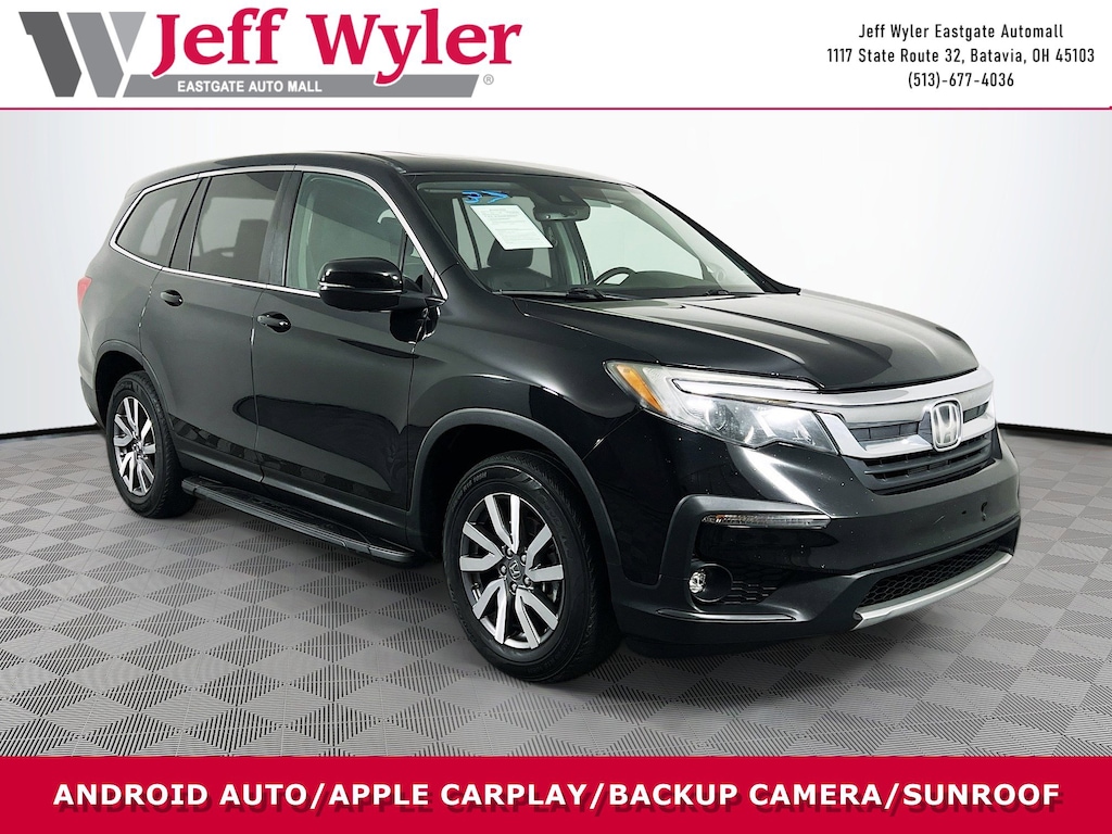Jeff Wyler Eastgate Auto Mall is proud to offer this terrific 2019 Honda Pilot EX-L in Crystal Black Pearl. Well equipped with: 18" Machine-Finished Alloy Wheels, 3rd row seats: split-bench, 4-Wheel Disc Brakes, 4.25 Axle Ratio, 7 Speakers, A/V remote: CabinControl, ABS brakes, Air Conditioning, Alloy wheels, AM/FM radio: SiriusXM, Apple CarPlay/Android Auto, Auto High-beam Headlights, Auto-dimming Rear-View mirror, Automatic temperature control, Blind Spot Information (BSI) System warning, Brake assist, Bumpers: body-color, Delay-off headlights, Driver door bin, Driver vanity mirror, Dual front impact airbags, Dual front side impact airbags, Electronic Stability Control, Emergency communication system: HondaLink Assist, Exterior Parking Camera Rear, Forward collision: Collision Mitigation Braking System (CMBS) + FCW mitigation, Four wheel independent suspension, Front anti-roll bar, Front Bucket Seats, Front Center Armrest, Front dual zone A/C, Front fog lights, Front reading lights, Fully automatic headlights, Garage door transmitter: HomeLink, Heated door mirrors, Heated Front Bucket Seats, Heated front seats, Illuminated entry, Lane departure: Lane Keeping Assist System (LKAS) active, Leather Shift Knob, Leather-Trimmed Seats, Low tire pressure warning, Memory seat, Occupant sensing airbag, Outside temperature display, Overhead airbag, Overhead console, Panic alarm, Passenger door bin, Passenger vanity mirror, Power door mirrors, Power driver seat, Power Liftgate, Power moonroof, Power passenger seat, Power steering, Power windows, Radio data system, Radio: AM/FM Audio System, Rear air conditioning, Rear anti-roll bar, Rear reading lights, Rear seat center armrest, Rear window defroster, Rear window wiper, Reclining 3rd row seat, Remote keyless entry, Security system, Speed control, Speed-sensing steering, Speed-Sensitive Wipers, Split folding rear seat, Spoiler, Steering wheel mounted audio controls, Tachometer, Telescoping steering wheel, Tilt steering wheel, Traction control, Trip computer, Turn signal indicator mirrors, and Variably intermittent wipers. Clean CARFAX. Awards: * ALG Residual Value Awards, Residual Value Awards Ask about available certifications. Used vehicles 10 years of age or newer with less than 100,000 miles are eligible for the Wyler Assurance Program, but eligible vehicles must pass our reconditioning process and multi-point inspection. Provided the vehicle passes inspection, vehicles will be eligible for the 6 month/6,000 mile limited warranty. The 6 month/6,000 mile limited warranty is NOT available on AS-IS vehicles, wholesale vehicles, lease buyback/pass-thru vehicles or un-inspected vehicles. Note that this program can also apply to vehicles where the remaining factory coverage is less than 6 months or 6,000 miles. Please check the Federal Trade Commission (FTC) Buyers guide on the vehicle for full details as to whether or not warranty coverage may apply. Contact Dealer for additional details. The Wyler Assurance 6 month/6,000 Mile limited warranty ends 6 months from the date of the Retail Purchase Agreement (BUYERS ORDER) or when the vehicle's odometer registers 6,000 additional miles to the mileage listed on the BUYERS ORDER, whichever comes first. Your Deductible - The warranty holder on your contract pays the first $100 of each covered repair.
