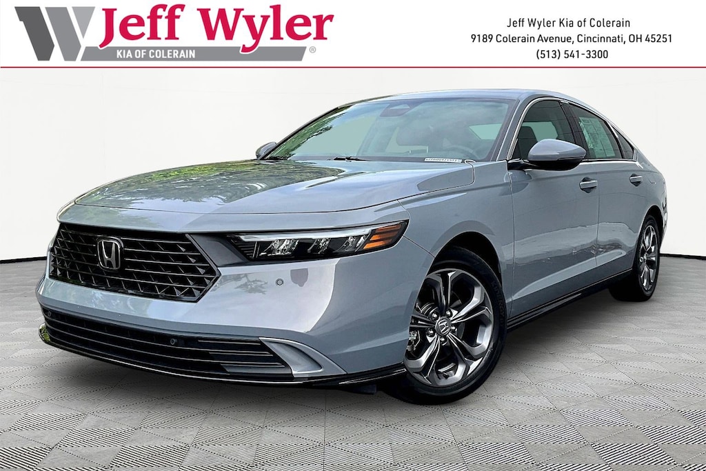 Jeff Wyler Kia of Colerain is very proud to offer this outstanding 2023 Honda Accord Hybrid EX-L in Urban Gray Pearl. 4-Wheel Disc Brakes, 8 Speakers, ABS brakes, Adaptive Cruise Control: Adaptive Cruise Control (ACC) with Low-Speed Follow, Air Conditioning, Alloy wheels, AM/FM radio, Apple CarPlay/Android Auto, Auto High-beam Headlights, Auto-dimming Rear-View mirror, Automatic temperature control, Brake assist, Bumpers: body-color, Compass, Delay-off headlights, Driver door bin, Driver vanity mirror, Dual front impact airbags, Dual front side impact airbags, Electronic Stability Control, Emergency communication system: HondaLink, Exterior Parking Camera Rear, Four wheel independent suspension, Front anti-roll bar, Front Bucket Seats, Front Center Armrest, Front dual zone A/C, Front reading lights, Fully automatic headlights, Heated door mirrors, Heated Front Bucket Seats, Heated front seats, Illuminated entry, Knee airbag, Lane departure: Lane Keeping Assist System (LKAS) active, Leather Shift Knob, Leather steering wheel, Leather-Trimmed Seat Trim, Low tire pressure warning, Memory seat, Occupant sensing airbag, Outside temperature display, Overhead airbag, Overhead console, Panic alarm, Passenger door bin, Passenger vanity mirror, Power door mirrors, Power driver seat, Power moonroof, Power passenger seat, Power steering, Power windows, Radio data system, Radio: 180-Watt Audio System, Rear anti-roll bar, Rear reading lights, Rear seat center armrest, Rear side impact airbag, Rear window defroster, Remote keyless entry, Security system, Speed control, Speed-sensing steering, Speed-Sensitive Wipers, Split folding rear seat, Steering wheel mounted audio controls, Telescoping steering wheel, Tilt steering wheel, Traction control, Trip computer, Turn signal indicator mirrors, Variably intermittent wipers, and Wheels: 17" x 7.5J Pewter Gray Our PRE-OWNED vehicles are put through a rigorous 167- POINT QUALITY ASSURANCE INSPECTION along with an average amount of over $1,400.00 SPENT to recondition each vehicle so we can be sure to deliver you the highest quality vehicle like you deserve! ***ONLINE PRICE DOES NOT INCLUDE WYLER FAMILY FIRST PACKAGE***
