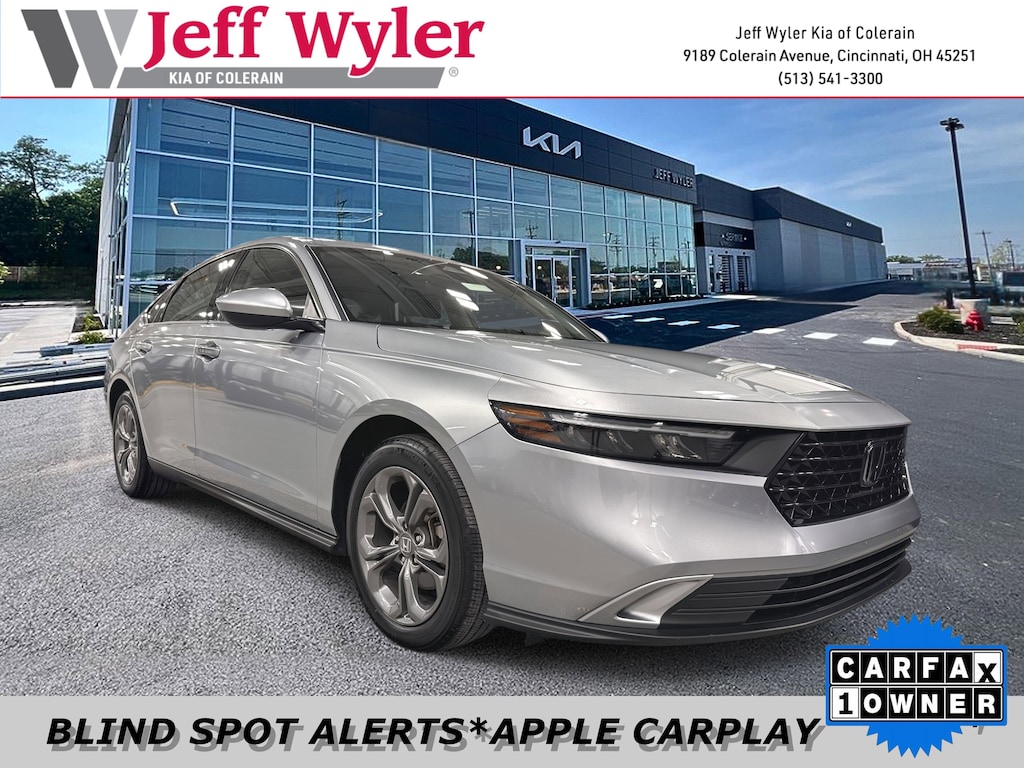 Jeff Wyler Kia of Colerain is excited to offer this good-looking 2024 Honda Accord EX in Solar Silver Metallic. 4-Wheel Disc Brakes, 8 Speakers, ABS brakes, Adaptive Cruise Control: Adaptive Cruise Control (ACC) with Low-Speed Follow, Air Conditioning, Alloy wheels, AM/FM radio, Apple CarPlay/Android Auto, Auto High-beam Headlights, Auto-dimming Rear-View mirror, Automatic temperature control, Blind Spot Information (BSI) System warning, Brake assist, Bumpers: body-color, Compass, Delay-off headlights, Driver door bin, Driver vanity mirror, Dual front impact airbags, Dual front side impact airbags, Electronic Stability Control, Emergency communication system: HondaLink Assist, Exterior Parking Camera Rear, Fabric Seat Trim, Four wheel independent suspension, Front anti-roll bar, Front Bucket Seats, Front Center Armrest, Front dual zone A/C, Front reading lights, Fully automatic headlights, Heated Front Bucket Seats, Heated front seats, Illuminated entry, Knee airbag, Lane departure: Lane Keeping Assist System (LKAS) active, Low tire pressure warning, Occupant sensing airbag, Outside temperature display, Overhead airbag, Overhead console, Panic alarm, Passenger door bin, Passenger vanity mirror, Power door mirrors, Power driver seat, Power moonroof, Power steering, Power windows, Radio data system, Radio: 180-Watt AM/FM Audio System, Rear anti-roll bar, Rear reading lights, Rear seat center armrest, Rear side impact airbag, Rear window defroster, Remote keyless entry, Security system, Speed control, Speed-sensing steering, Speed-Sensitive Wipers, Split folding rear seat, Steering wheel mounted audio controls, Tachometer, Telescoping steering wheel, Tilt steering wheel, Traction control, Trip computer, Variably intermittent wipers, and Wheels: 17" x 7.5" Pewter Gray Our PRE-OWNED vehicles are put through a rigorous 167- POINT QUALITY ASSURANCE INSPECTION along with an average amount of over $1,400.00 SPENT to recondition each vehicle so we can be sure to deliver you the highest quality vehicle like you deserve! ***ONLINE PRICE DOES NOT INCLUDE WYLER FAMILY FIRST PACKAGE***