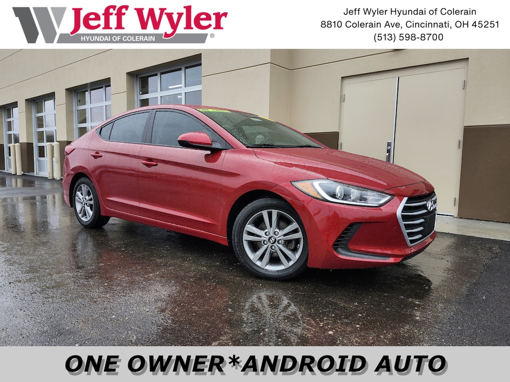 Jeff Wyler Superior Hyundai is honored to offer this great-looking 2017 Hyundai Elantra SE in Scarlet Red Pearl. Well equipped with: Cargo Package, SE A/T Popular Equipment Package 07, 15" Steel Wheels w/Covers, 16" Alloy Wheels, 6 Speakers, ABS brakes, Air Conditioning, AM/FM radio: SiriusXM, Brake assist, Bumpers: body-color, Carpeted Floor Mats, CD player, Delay-off headlights, Driver door bin, Driver vanity mirror, Dual front impact airbags, Dual front side impact airbags, Electronic Stability Control, Front anti-roll bar, Front Bucket Seats, Front Center Armrest, Front reading lights, Front wheel independent suspension, Illuminated entry, Knee airbag, Low tire pressure warning, Occupant sensing airbag, Outside temperature display, Overhead airbag, Overhead console, Panic alarm, Passenger door bin, Passenger vanity mirror, Power door mirrors, Power steering, Power windows, Premium Cloth Seat Trim, Radio: AM/FM/HD/SiriusXM Display Audio, Radio: AM/FM/SiriusXM/CD/MP3 Audio System, Rear Bumper Applique, Rear window defroster, Remote keyless entry, Security system, Speed control, Speed-sensing steering, Split folding rear seat, Steering wheel mounted audio controls, Tachometer, Telescoping steering wheel, Tilt steering wheel, Traction control, Trip computer, and Variably intermittent wipers. CARFAX One-Owner. This sales price excludes tax, title, and dealer fees. While every reasonable effort is made to ensure the accuracy of this information, we are not responsible for any errors or omissions contained on these pages. Used vehicles 10 years of age or newer with less than 100,000 miles are eligible for the Wyler Assurance Program, but eligible vehicles must pass our reconditioning process and multi-point inspection. Provided the vehicle passes inspection, vehicles will be eligible for the 6 month/6,000 mile limited warranty. The 6 month/6,000 mile limited warranty is NOT available on AS-IS vehicles, wholesale vehicles, lease buyback/pass-thru vehicles or un-inspected vehicles. Note that this program can also apply to vehicles where the remaining factory coverage is less than 6 months or 6,000 miles. Please check the Federal Trade Commission (FTC) Buyers guide on the vehicle for full details as to whether or not warranty coverage may apply. Contact Dealer for additional details. The Wyler Assurance 6 month/6,000 Mile limited warranty ends 6 months from the date of the Retail Purchase Agreement (BUYERS ORDER) or when the vehicle's odometer registers 6,000 additional miles to the mileage listed on the BUYERS ORDER, whichever comes first.Your Deductible - The warranty holder on your contract pays the first $100 of each covered repair.