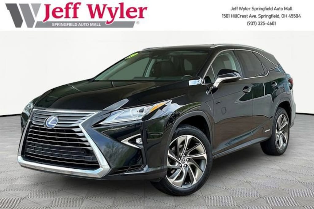 Jeff Wyler Springfield Auto Mall is very proud to offer this wonderful-looking 2019 Lexus RX 450hL Luxury in Caviar. Well equipped with: Luxury Package (Heated Wood Steering Wheel, Illuminated Aluminum & Wood Door Trim, and Silver Wheel Caps), 12 Speakers, 12.3" Navigation System, 20" Wheels, 3rd row seats: split-bench, 4-Wheel Disc Brakes, ABS brakes, Adaptive suspension, Air Conditioning, Alloy wheels, AM/FM radio: SiriusXM, Anti-whiplash front head restraints, Auto High-beam Headlights, Auto tilt-away steering wheel, Auto-dimming door mirrors, Auto-dimming Rear-View mirror, Automatic temperature control, Axle Ratio: 3.542, Brake assist, Bumpers: body-color, CD player, Color Heads-Up Display, Delay-off headlights, Driver door bin, Driver vanity mirror, Dual front impact airbags, Dual front side impact airbags, Electronic Stability Control, Emergency communication system, Exterior Parking Camera Rear, Four wheel independent suspension, Front anti-roll bar, Front Bucket Seats, Front Center Armrest, Front dual zone A/C, Front fog lights, Front reading lights, Fully automatic headlights, Garage door transmitter: HomeLink, Genuine wood console insert, Genuine wood dashboard insert, Genuine wood door panel insert, Heated door mirrors, Heated front seats, Heated steering wheel, Illuminated entry, Knee airbag, Leather Shift Knob, Leather steering wheel, Low tire pressure warning, Memory seat, Occupant sensing airbag, Outside temperature display, Overhead airbag, Overhead console, Panic alarm, Passenger door bin, Passenger vanity mirror, Power door mirrors, Power driver seat, Power Liftgate, Power moonroof, Power passenger seat, Power steering, Power windows, Radio data system, Radio: AM/FM/HD w/Single In-Dash CD, Rain sensing wipers, Rear air conditioning, Rear anti-roll bar, Rear reading lights, Rear seat center armrest, Rear side impact airbag, Rear window defroster, Rear window wiper, Reclining 3rd row seat, Remote keyless entry, Roof rack: rails only, Security system, Semi-Aniline Leather Seat Trim, Speed control, Speed-sensing steering, Split folding rear seat, Spoiler, Steering wheel memory, Steering wheel mounted audio controls, Tachometer, Telescoping steering wheel, Tilt steering wheel, Touchless Power Back Door, Traction control, Trip computer, Turn signal indicator mirrors, Variably intermittent wipers, and Ventilated front seats. Awards: * 2019 KBB.com Best Resale Value Awards * 2019 KBB.com 10 Best Luxury SUVs * 2019 KBB.com 5-Year Cost to Own Awards * 2019 KBB.com Brand Image Awards Ask about available certifications. Used vehicles 10 years of age or newer with less than 100,000 miles are eligible for the Wyler Assurance Program, but eligible vehicles must pass our reconditioning process and multi-point inspection. Provided the vehicle passes inspection, vehicles will be eligible for the 6 month/6,000 mile limited warranty. The 6 month/6,000 mile limited warranty is NOT available on AS-IS vehicles, wholesale vehicles, lease buyback/pass-thru vehicles or un-inspected vehicles. Note that this program can also apply to vehicles where the remaining factory coverage is less than 6 months or 6,000 miles. Please check the Federal Trade Commission (FTC) Buyers guide on the vehicle for full details as to whether or not warranty coverage may apply. Contact Dealer for additional details. The Wyler Assurance 6 month/6,000 Mile limited warranty ends 6 months from the date of the Retail Purchase Agreement (BUYERS ORDER) or when the vehicle's odometer registers 6,000 additional miles to the mileage listed on the BUYERS ORDER, whichever comes first. Your Deductible - The warranty holder on your contract pays the first $100 of each covered repair.