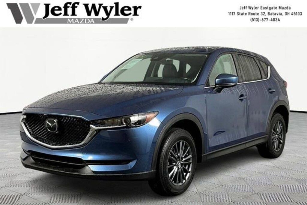Jeff Wyler Eastgate Auto Mall is honored to offer this superb 2021 Mazda CX-5 Touring in Eternal Blue Mica. Well equipped with: 4-Wheel Disc Brakes, 4.624 Axle Ratio, 6 Speakers, ABS brakes, Air Conditioning, Alloy wheels, AM/FM radio, AppLink/Apple CarPlay and Android Auto, Auto High-beam Headlights, Automatic temperature control, Bose 10-Speaker Premium Audio Sound System, Brake assist, Bumpers: body-color, Delay-off headlights, Driver door bin, Driver vanity mirror, Dual front impact airbags, Dual front side impact airbags, Electronic Stability Control, Emergency communication system: MAZDA CONNECT, Exterior Parking Camera Rear, Four wheel independent suspension, Front anti-roll bar, Front Bucket Seats, Front Center Armrest, Front dual zone A/C, Front reading lights, Fully automatic headlights, Heated Front Bucket Seats, Heated front seats, Illuminated entry, Leather Seat Trim, Leather Shift Knob, Leatherette Seat Trim, Low tire pressure warning, Occupant sensing airbag, Outside temperature display, Overhead airbag, Overhead console, Panic alarm, Passenger door bin, Passenger vanity mirror, Power door mirrors, Power driver seat, Power steering, Power windows, Radio data system, Radio: AM/FM/HD Audio System, Rain sensing wipers, Rear anti-roll bar, Rear reading lights, Rear seat center armrest, Rear window defroster, Rear window wiper, Remote keyless entry, Speed control, Speed-sensing steering, Split folding rear seat, Spoiler, Steering wheel mounted audio controls, Tachometer, Telescoping steering wheel, Tilt steering wheel, Traction control, Trip computer, Turn signal indicator mirrors, Variably intermittent wipers, and Wheels: 17 x 7J Aluminum Alloy. Clean CARFAX. Ask about available certifications. Used vehicles 10 years of age or newer with less than 100,000 miles are eligible for the Wyler Assurance Program, but eligible vehicles must pass our reconditioning process and multi-point inspection. Provided the vehicle passes inspection, vehicles will be eligible for the 6 month/6,000 mile limited warranty. The 6 month/6,000 mile limited warranty is NOT available on AS-IS vehicles, wholesale vehicles, lease buyback/pass-thru vehicles or un-inspected vehicles. Note that this program can also apply to vehicles where the remaining factory coverage is less than 6 months or 6,000 miles. Please check the Federal Trade Commission (FTC) Buyers guide on the vehicle for full details as to whether or not warranty coverage may apply. Contact Dealer for additional details. The Wyler Assurance 6 month/6,000 Mile limited warranty ends 6 months from the date of the Retail Purchase Agreement (BUYERS ORDER) or when the vehicle's odometer registers 6,000 additional miles to the mileage listed on the BUYERS ORDER, whichever comes first. Your Deductible - The warranty holder on your contract pays the first $100 of each covered repair.