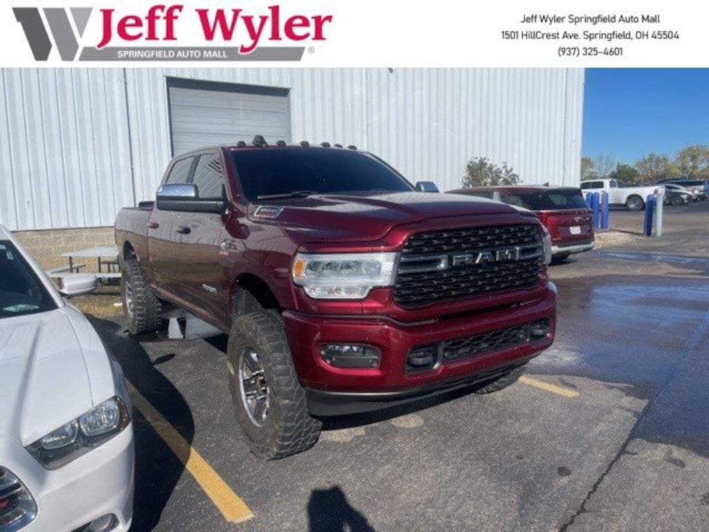 Jeff Wyler Springfield Auto Mall is delighted to offer this stunning 2022 Ram 2500 Big Horn in Delmonico Red Pearlcoat. Well equipped with: Bed Utility Group (LED Bed Lighting, MOPAR Deployable Bed Step, and MOPAR Spray In Bedliner), Level C Equipment Group (115V Auxiliary Front Power Outlet, 115V Auxiliary Rear Power Outlet, 2 Way Rear Headrest Seat, 2nd Row In Floor Storage Bins, 4 Way Front Headrests, 40/20/40 Split Bench Seat, 400W Inverter, Air Conditioning ATC w/Dual Zone Control, Auto-Dimming Rear-View Mirror, Center Hub, Center Stack Storage Drawer, Cluster 7.0" TFT Color Display, Dampened Tailgate, Dual Glove Boxes, Exterior 115V AC Outlet, Foam Bottle Insert (Door Trim Panel), Folding Flat Load Floor Storage, Footwell Courtesy Lamp, Front Armrest w/Cupholders, Front Center Seat Cushion Storage, Front Fog Lamps, Front Seat Back Map Pockets, Glove Box Lamp, Heated Front Seats, Heated Steering Wheel, Leather Wrapped Steering Wheel, LED Tail Lamps, Locking Lower Glove Box, Manual Adjust 4-Way Front Passenger Seat, Media Hub w/2 Charge Only USBs, ParkSense Front/Rear Park Assist System, Power 2-Way Driver Lumbar Adjust, Power Adjust 8-Way Driver Seat, Power Adjustable Pedals, Premium Cloth 40/20/40 Bench Seat, Rear 60/40 Folding Seat, Rear Dome w/On/Off Switch Lamp, Rear Power Sliding Window, Rear Window Defroster, Remote Start System, Security Alarm, Steering Wheel Mounted Audio Controls, Storage Tray, Sun Visors w/Illuminated Vanity Mirrors, Universal Garage Door Opener, and Wheels: 18" x 8.0" Polished Aluminum), Premium Lighting Group (Front LED Fog Lamps and LED Reflector Headlamps), Quick Order Package 2HZ Big Horn, Snow Chief Group (220 Amp Alternator, Anti-Spin Differential Rear Axle, Clearance Lamps, Dash Pass Thru Wire Circuits, and I/P Mounted Auxiliary Switches), Sport Appearance Package (Black Interior Accents, Body Color Door Handles, Body Color Grille Surround, Painted Front Bumper, Painted Rear Bumper, and Sport Decal), 20" x 8.0" Polished Aluminum Wheels, 3.73 Axle Ratio, 4-Wheel Disc Brakes, 4G LTE Wi-Fi Hot Spot, 6 Speakers, 8.4" Touchscreen Display, ABS brakes, Active Noise Control System, Air Conditioning, Alexa Built-In, All R1 High Radios, All Radio Equipped Vehicles, AM/FM radio: SiriusXM, Apple CarPlay, Apple CarPlay/Android Auto, Bluetooth Handsfree Phone & Audio, Brake assist, Bumpers: chrome, Cloth 40/20/40 Bench Seat, Compass, Connected Travel & Traffic Services, Connectivity - US/Canada, Delay-off headlights, Disassociated Touchscreen Display, Driver door bin, Dual front impact airbags, Dual front side impact airbags, Electronic Stability Control, Electronically Controlled Throttle, For Details, Visit DriveUconnect.com, For More Info, Call 800-643-2112, Front anti-roll bar, Front Center Armrest w/Storage, Front License Plate Bracket, Front reading lights, Fully automatic headlights, Global Telematics Box Module (TBM), Google Android Auto, GPS Antenna Input, GPS Navigation, HD Radio, Heated door mirrors, Illuminated entry, Integrated Center Stack Radio, Integrated Voice Command w/Bluetooth, Low tire pressure warning, Manual Adjust 4-Way Driver Seat, Occupant sensing airbag, Off-Road Information Pages, Outside temperature display, Overhead airbag, Overhead console, Panic alarm, ParkView Rear Back-Up Camera, Passenger door bin, Passenger vanity mirror, Power door mirrors, Power steering, Power windows, Radio data system, Radio: Uconnect 5 Nav w/8.4" Display, Radio: Uconnect 5 W w/8.4" Display, Rear anti-roll bar, Rear Folding Seat, Rear seat center armrest, Rear step bumper, Rear Wheelhouse Liners, Remote keyless entry, Selectable Tire Fill Alert, SiriusXM Radio Service, SiriusXM Satellite Radio, SiriusXM w/360L, Speed control, Tachometer, Tilt steering wheel, Tip Start, Tow Hooks, Traction control, Trip computer, Turn signal indicator mirrors, Variably intermittent wipers, Vendor Painted Cargo Box, Vendor Painted Cargo Box Tracking, Voltmeter, and Wheels: 18" x 8.0" Steel Chrome ClaD. Ask about