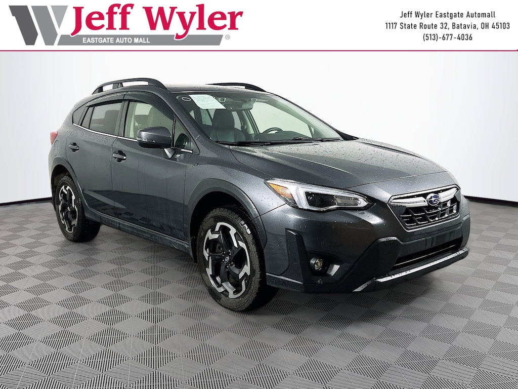 Jeff Wyler Eastgate Auto Mall is delighted to offer this terrific 2021 Subaru Crosstrek Limited in Magnetite Gray Metallic. Well equipped with: Moonroof Package 1 (Power Moonroof), Popular Package #2 (All-Weather Floor Liners, Auto-Dimming Mirror w/Compass & HomeLink, Rear Bumper Cover, Rear Seatback Protector, and Splash Guards), 3.70 Axle Ratio, 4-Wheel Disc Brakes, 6 Speakers, ABS brakes, Air Conditioning, Alloy wheels, AM/FM radio: SiriusXM, Anti-whiplash front head restraints, Auto High-beam Headlights, Automatic temperature control, Brake assist, Bumpers: body-color, CD player, Driver door bin, Driver vanity mirror, Dual front impact airbags, Dual front side impact airbags, Electronic Stability Control, Emergency communication system: STARLINK Safety and Security (Subscription Required), Exterior Parking Camera Rear, Four wheel independent suspension, Front anti-roll bar, Front Bucket Seats, Front Center Armrest, Front fog lights, Front reading lights, Fully automatic headlights, Heated door mirrors, Heated Front Bucket Seats, Heated front seats, Illuminated entry, Knee airbag, Leather-Trimmed Upholstery, Low tire pressure warning, Occupant sensing airbag, Outside temperature display, Overhead airbag, Overhead console, Panic alarm, Passenger door bin, Passenger vanity mirror, Power door mirrors, Power driver seat, Power steering, Power windows, Radio data system, Radio: Subaru STARLINK 8.0" Multimedia Plus System, Rear anti-roll bar, Rear seat center armrest, Rear window defroster, Rear window wiper, Remote keyless entry, Security system, Speed control, Speed-sensing steering, Split folding rear seat, Spoiler, STARLINK/Apple CarPlay/Android Auto, Steering wheel mounted audio controls, Subaru STARLINK Smartphone Integration, Tachometer, Telescoping steering wheel, Tilt steering wheel, Traction control, Trip computer, Turn signal indicator mirrors, Variably intermittent wipers, and Wheels: 18" Alloy Machine Finish. CARFAX One-Owner. Awards: * ALG Residual Value Awards, Residual Value Awards Ask about available certifications. Used vehicles 10 years of age or newer with less than 100,000 miles are eligible for the Wyler Assurance Program, but eligible vehicles must pass our reconditioning process and multi-point inspection. Provided the vehicle passes inspection, vehicles will be eligible for the 6 month/6,000 mile limited warranty. The 6 month/6,000 mile limited warranty is NOT available on AS-IS vehicles, wholesale vehicles, lease buyback/pass-thru vehicles or un-inspected vehicles. Note that this program can also apply to vehicles where the remaining factory coverage is less than 6 months or 6,000 miles. Please check the Federal Trade Commission (FTC) Buyers guide on the vehicle for full details as to whether or not warranty coverage may apply. Contact Dealer for additional details. The Wyler Assurance 6 month/6,000 Mile limited warranty ends 6 months from the date of the Retail Purchase Agreement (BUYERS ORDER) or when the vehicle's odometer registers 6,000 additional miles to the mileage listed on the BUYERS ORDER, whichever comes first. Your Deductible - The warranty holder on your contract pays the first $100 of each covered repair.