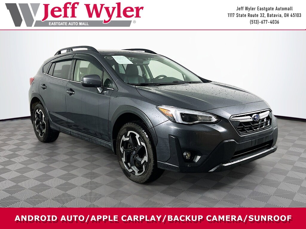 Jeff Wyler Eastgate Auto Mall is delighted to offer this terrific 2021 Subaru Crosstrek Limited in Magnetite Gray Metallic. Well equipped with: Moonroof Package 1 (Power Moonroof), Popular Package #2 (All-Weather Floor Liners, Auto-Dimming Mirror w/Compass & HomeLink, Rear Bumper Cover, Rear Seatback Protector, and Splash Guards), 3.70 Axle Ratio, 4-Wheel Disc Brakes, 6 Speakers, ABS brakes, Air Conditioning, Alloy wheels, AM/FM radio: SiriusXM, Anti-whiplash front head restraints, Auto High-beam Headlights, Automatic temperature control, Brake assist, Bumpers: body-color, CD player, Driver door bin, Driver vanity mirror, Dual front impact airbags, Dual front side impact airbags, Electronic Stability Control, Emergency communication system: STARLINK Safety and Security (Subscription Required), Exterior Parking Camera Rear, Four wheel independent suspension, Front anti-roll bar, Front Bucket Seats, Front Center Armrest, Front fog lights, Front reading lights, Fully automatic headlights, Heated door mirrors, Heated Front Bucket Seats, Heated front seats, Illuminated entry, Knee airbag, Leather-Trimmed Upholstery, Low tire pressure warning, Occupant sensing airbag, Outside temperature display, Overhead airbag, Overhead console, Panic alarm, Passenger door bin, Passenger vanity mirror, Power door mirrors, Power driver seat, Power steering, Power windows, Radio data system, Radio: Subaru STARLINK 8.0" Multimedia Plus System, Rear anti-roll bar, Rear seat center armrest, Rear window defroster, Rear window wiper, Remote keyless entry, Security system, Speed control, Speed-sensing steering, Split folding rear seat, Spoiler, STARLINK/Apple CarPlay/Android Auto, Steering wheel mounted audio controls, Subaru STARLINK Smartphone Integration, Tachometer, Telescoping steering wheel, Tilt steering wheel, Traction control, Trip computer, Turn signal indicator mirrors, Variably intermittent wipers, and Wheels: 18" Alloy Machine Finish. CARFAX One-Owner. Awards: * ALG Residual Value Awards, Residual Value Awards Ask about available certifications. Used vehicles 10 years of age or newer with less than 100,000 miles are eligible for the Wyler Assurance Program, but eligible vehicles must pass our reconditioning process and multi-point inspection. Provided the vehicle passes inspection, vehicles will be eligible for the 6 month/6,000 mile limited warranty. The 6 month/6,000 mile limited warranty is NOT available on AS-IS vehicles, wholesale vehicles, lease buyback/pass-thru vehicles or un-inspected vehicles. Note that this program can also apply to vehicles where the remaining factory coverage is less than 6 months or 6,000 miles. Please check the Federal Trade Commission (FTC) Buyers guide on the vehicle for full details as to whether or not warranty coverage may apply. Contact Dealer for additional details. The Wyler Assurance 6 month/6,000 Mile limited warranty ends 6 months from the date of the Retail Purchase Agreement (BUYERS ORDER) or when the vehicle's odometer registers 6,000 additional miles to the mileage listed on the BUYERS ORDER, whichever comes first. Your Deductible - The warranty holder on your contract pays the first $100 of each covered repair.