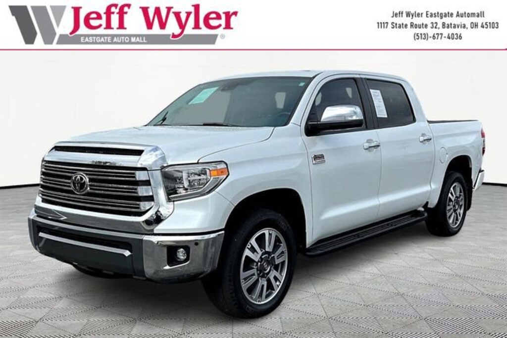 Jeff Wyler Eastgate Auto Mall is pleased to offer this superb-looking 2021 Toyota Tundra 1794 in Super White. Well equipped with: Western Grade Package, ABS brakes, Active Cruise Control, Alloy wheels, Compass, Electronic Stability Control, Front dual zone A/C, Heated & Ventilated Front Bucket Seats, Heated door mirrors, Heated front seats, Illuminated entry, Low tire pressure warning, Navigation System, Remote keyless entry, Traction control, 12 Speakers, 4-Wheel Disc Brakes, 4.30 Axle Ratio, Air Conditioning, AM/FM radio: SiriusXM, Apple CarPlay/Android Auto, Auto High-beam Headlights, Auto-dimming door mirrors, Auto-dimming Rear-View mirror, Automatic temperature control, Brake assist, Delay-off headlights, Driver door bin, Driver vanity mirror, Dual front impact airbags, Dual front side impact airbags, Emergency communication system: Safety Connect with 1-year trial, Exterior Parking Camera Rear, Front anti-roll bar, Front Bucket Seats, Front Center Armrest, Front fog lights, Front reading lights, Front wheel independent suspension, Fully automatic headlights, Garage door transmitter: HomeLink, Knee airbag, Leather Seat Trim (LD), Leather steering wheel, Memory seat, Navigation system: Dynamic Navigation (3-year trial), Occupant sensing airbag, Outside temperature display, Overhead airbag, Overhead console, Panic alarm, Passenger door bin, Passenger vanity mirror, Power door mirrors, Power driver seat, Power passenger seat, Power steering, Power windows, Radio data system, Radio: Premium JBL Audio w/Dynamic Navigation, Rear reading lights, Rear seat center armrest, Rear step bumper, Rear window defroster, Remote Connect, Safety Connect, Security system, Service Connect, SiriusXM Radio, Speed control, Speed-sensing steering, Split folding rear seat, Steering wheel memory, Steering wheel mounted audio controls, Tachometer, Telescoping steering wheel, Tilt steering wheel, Trip computer, Turn signal indicator mirrors, Variably intermittent wipers, Ventilated front seats, Voltmeter, and Wheels: 20" 6-Spoke Alloy w/Accented Spokes. Clean CARFAX. Ask about available certifications. Used vehicles 10 years of age or newer with less than 100,000 miles are eligible for the Wyler Assurance Program, but eligible vehicles must pass our reconditioning process and multi-point inspection. Provided the vehicle passes inspection, vehicles will be eligible for the 6 month/6,000 mile limited warranty. The 6 month/6,000 mile limited warranty is NOT available on AS-IS vehicles, wholesale vehicles, lease buyback/pass-thru vehicles or un-inspected vehicles. Note that this program can also apply to vehicles where the remaining factory coverage is less than 6 months or 6,000 miles. Please check the Federal Trade Commission (FTC) Buyers guide on the vehicle for full details as to whether or not warranty coverage may apply. Contact Dealer for additional details. The Wyler Assurance 6 month/6,000 Mile limited warranty ends 6 months from the date of the Retail Purchase Agreement (BUYERS ORDER) or when the vehicle's odometer registers 6,000 additional miles to the mileage listed on the BUYERS ORDER, whichever comes first. Your Deductible - The warranty holder on your contract pays the first $100 of each covered repair.