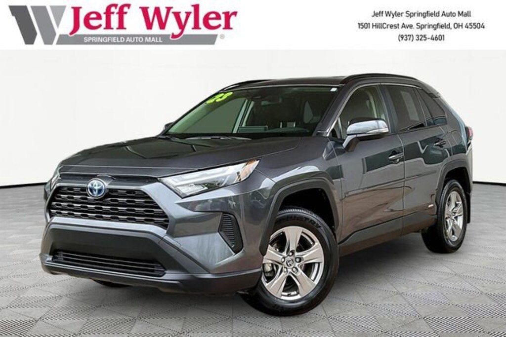 Jeff Wyler Springfield Auto Mall is excited to offer this gorgeous 2023 Toyota RAV4 Hybrid XLE in Magnetic Gray Metallic. Well equipped with: Protection Package (TMS), 4-Wheel Disc Brakes, 6 Speakers, ABS brakes, Air Conditioning, All Weather Floor Liners & Cargo Tray (TMS), Alloy wheels, AM/FM radio: SiriusXM, Auto High-beam Headlights, Automatic temperature control, Axle Ratio: TBD, Brake assist, Bumpers: body-color, Delay-off headlights, Door Sill Protector (TMS), Driver door bin, Driver vanity mirror, Dual front impact airbags, Dual front side impact airbags, Electronic Stability Control, Emergency communication system: Safety Connect (1-year trial), Exterior Parking Camera Rear, Fabric Seat Trim, Four wheel independent suspension, Front anti-roll bar, Front Bucket Seats, Front Center Armrest, Front dual zone A/C, Front reading lights, Front Sport Seats, Fully automatic headlights, Heated door mirrors, Illuminated entry, Knee airbag, Lane Departure Warning System, Low tire pressure warning, Occupant sensing airbag, Outside temperature display, Overhead airbag, Overhead console, Paint Protection Film (TMS), Panic alarm, Passenger door bin, Passenger vanity mirror, Power door mirrors, Power driver seat, Power steering, Power windows, Radio data system, Radio: AM/FM/XM Audio System, Rear anti-roll bar, Rear seat center armrest, Rear window defroster, Rear window wiper, Remote keyless entry, Speed control, Speed-sensing steering, Split folding rear seat, Spoiler, Steering wheel mounted audio controls, Telescoping steering wheel, Tilt steering wheel, Traction control, Trip computer, Turn signal indicator mirrors, Variably intermittent wipers, and Wheels: 17" x 7.0J Silver Aluminum Alloy. Ask about available certifications. Used vehicles 10 years of age or newer with less than 100,000 miles are eligible for the Wyler Assurance Program, but eligible vehicles must pass our reconditioning process and multi-point inspection. Provided the vehicle passes inspection, vehicles will be eligible for the 6 month/6,000 mile limited warranty. The 6 month/6,000 mile limited warranty is NOT available on AS-IS vehicles, wholesale vehicles, lease buyback/pass-thru vehicles or un-inspected vehicles. Note that this program can also apply to vehicles where the remaining factory coverage is less than 6 months or 6,000 miles. Please check the Federal Trade Commission (FTC) Buyers guide on the vehicle for full details as to whether or not warranty coverage may apply. Contact Dealer for additional details. The Wyler Assurance 6 month/6,000 Mile limited warranty ends 6 months from the date of the Retail Purchase Agreement (BUYERS ORDER) or when the vehicle's odometer registers 6,000 additional miles to the mileage listed on the BUYERS ORDER, whichever comes first. Your Deductible - The warranty holder on your contract pays the first $100 of each covered repair.