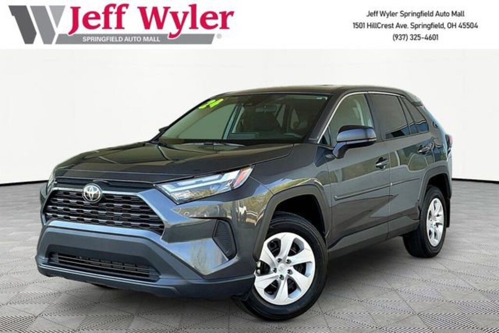 Jeff Wyler Springfield Auto Mall is proud to offer this good-looking 2024 Toyota RAV4 LE in Magnetic Gray Metallic. Well equipped with: 17" Steel Wheels, 4-Wheel Disc Brakes, 6 Speakers, ABS brakes, Air Conditioning, AM/FM radio: SiriusXM, Auto High-beam Headlights, Axle Ratio: 3.177, Brake assist, Bumpers: body-color, Driver door bin, Driver vanity mirror, Dual front impact airbags, Dual front side impact airbags, Electronic Stability Control, Emergency communication system: Safety Connect (10-year trial), Exterior Parking Camera Rear, Fabric Seat Trim, Four wheel independent suspension, Front anti-roll bar, Front Bucket Seats, Front Center Armrest, Front reading lights, Illuminated entry, Knee airbag, Low tire pressure warning, Occupant sensing airbag, Outside temperature display, Overhead airbag, Overhead console, Panic alarm, Passenger door bin, Passenger vanity mirror, Power door mirrors, Power steering, Power windows, Radio data system, Radio: AM/FM/XM Audio System, Rear anti-roll bar, Rear seat center armrest, Rear window defroster, Rear window wiper, Remote keyless entry, Speed control, Speed-sensing steering, Split folding rear seat, Spoiler, Steering wheel mounted audio controls, Tachometer, Telescoping steering wheel, Tilt steering wheel, Traction control, and Trip computer. Ask about available certifications. Used vehicles 10 years of age or newer with less than 100,000 miles are eligible for the Wyler Assurance Program, but eligible vehicles must pass our reconditioning process and multi-point inspection. Provided the vehicle passes inspection, vehicles will be eligible for the 6 month/6,000 mile limited warranty. The 6 month/6,000 mile limited warranty is NOT available on AS-IS vehicles, wholesale vehicles, lease buyback/pass-thru vehicles or un-inspected vehicles. Note that this program can also apply to vehicles where the remaining factory coverage is less than 6 months or 6,000 miles. Please check the Federal Trade Commission (FTC) Buyers guide on the vehicle for full details as to whether or not warranty coverage may apply. Contact Dealer for additional details. The Wyler Assurance 6 month/6,000 Mile limited warranty ends 6 months from the date of the Retail Purchase Agreement (BUYERS ORDER) or when the vehicle's odometer registers 6,000 additional miles to the mileage listed on the BUYERS ORDER, whichever comes first. Your Deductible - The warranty holder on your contract pays the first $100 of each covered repair.