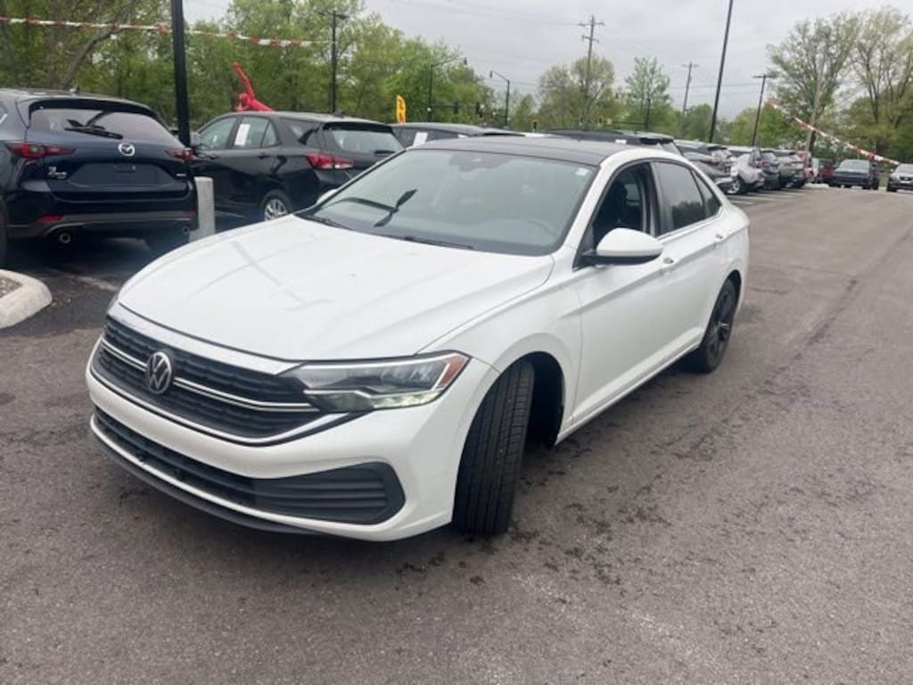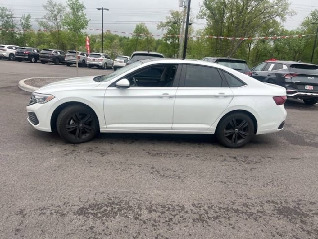 Jeff Wyler Eastgate Auto Mall is excited to offer this handsome 2022 Volkswagen Jetta 1.5T SE in White. Well equipped with: 4 Speakers, 4-Wheel Disc Brakes, ABS brakes, Active Blind Spot Monitor, Air Conditioning, Alloy wheels, AM/FM radio, Auto-dimming Rear-View mirror, Automatic temperature control, Brake assist, Bumpers: body-color, Delay-off headlights, Driver door bin, Driver vanity mirror, Dual front impact airbags, Dual front side impact airbags, Electronic Stability Control, Emergency communication system: Car-Net, Exterior Parking Camera Rear, Front anti-roll bar, Front Bucket Seats, Front Center Armrest, Front dual zone A/C, Front wheel independent suspension, Fully automatic headlights, Heated door mirrors, Heated Front Comfort Sport Seats, Heated front seats, Illuminated entry, Leather Shift Knob, Low tire pressure warning, Occupant sensing airbag, Outside temperature display, Overhead airbag, Overhead console, Panic alarm, Passenger door bin, Passenger vanity mirror, Power door mirrors, Power driver seat, Power steering, Power windows, Radio data system, Radio: MIB3 Composition Color w/6.5 Touchscreen, Rain sensing wipers, Rear anti-roll bar, Rear reading lights, Rear seat center armrest, Rear window defroster, Remote keyless entry, Speed control, Speed-sensing steering, Split folding rear seat, Steering wheel mounted audio controls, Tachometer, Telescoping steering wheel, Tilt steering wheel, Traction control, Trip computer, V-Tex Leatherette Seat Trim, Variably intermittent wipers, and Wheels: 17 Twin 5-Spoke Silver Painted Alloy. CARFAX One-Owner. Clean CARFAX. Ask about available certifications. Used vehicles 10 years of age or newer with less than 100,000 miles are eligible for the Wyler Assurance Program, but eligible vehicles must pass our reconditioning process and multi-point inspection. Provided the vehicle passes inspection, vehicles will be eligible for the 6 month/6,000 mile limited warranty. The 6 month/6,000 mile limited warranty is NOT available on AS-IS vehicles, wholesale vehicles, lease buyback/pass-thru vehicles or un-inspected vehicles. Note that this program can also apply to vehicles where the remaining factory coverage is less than 6 months or 6,000 miles. Please check the Federal Trade Commission (FTC) Buyers guide on the vehicle for full details as to whether or not warranty coverage may apply. Contact Dealer for additional details. The Wyler Assurance 6 month/6,000 Mile limited warranty ends 6 months from the date of the Retail Purchase Agreement (BUYERS ORDER) or when the vehicle's odometer registers 6,000 additional miles to the mileage listed on the BUYERS ORDER, whichever comes first. Your Deductible - The warranty holder on your contract pays the first $100 of each covered repair.